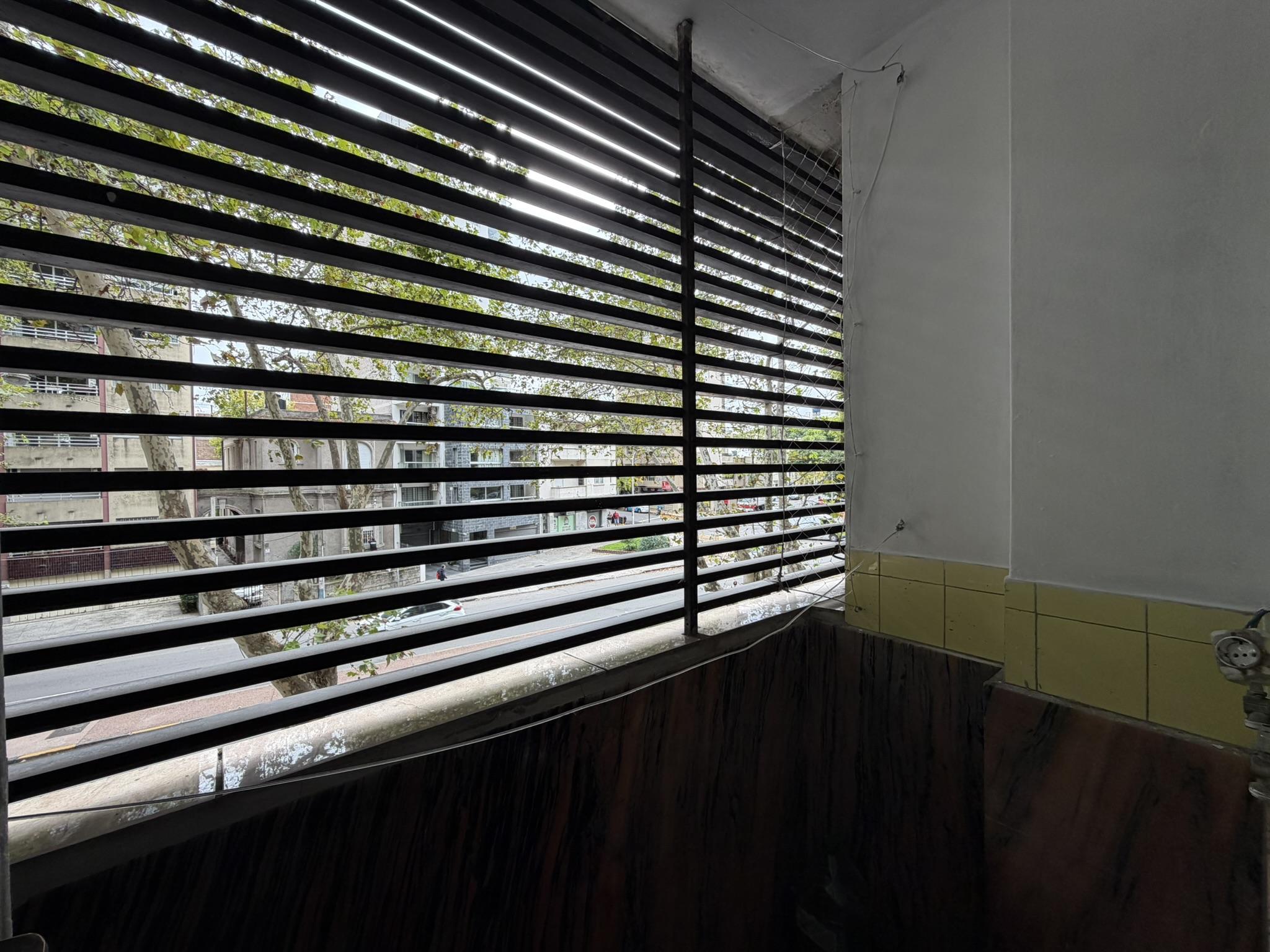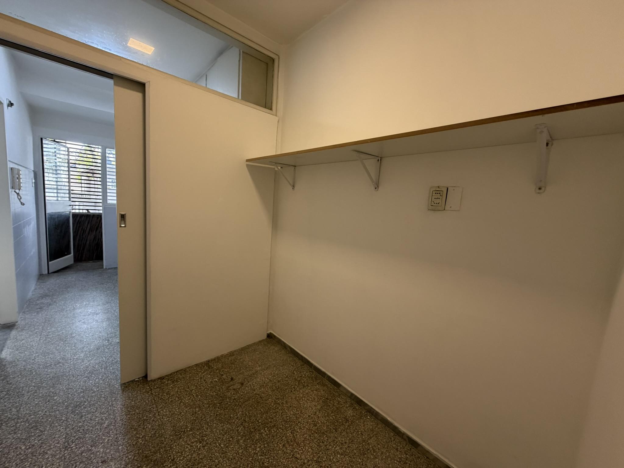 Living comedor amplio al frente con terraza (cerrada), 2 dormitorios (al contrafrente muy despejado) con placares y doble ventana, hall de distribución dormitorios con mueble tipo biblioteca, baño completo actualizado, cocina con placares, despensa, baño de servicio y terraza lavadero.